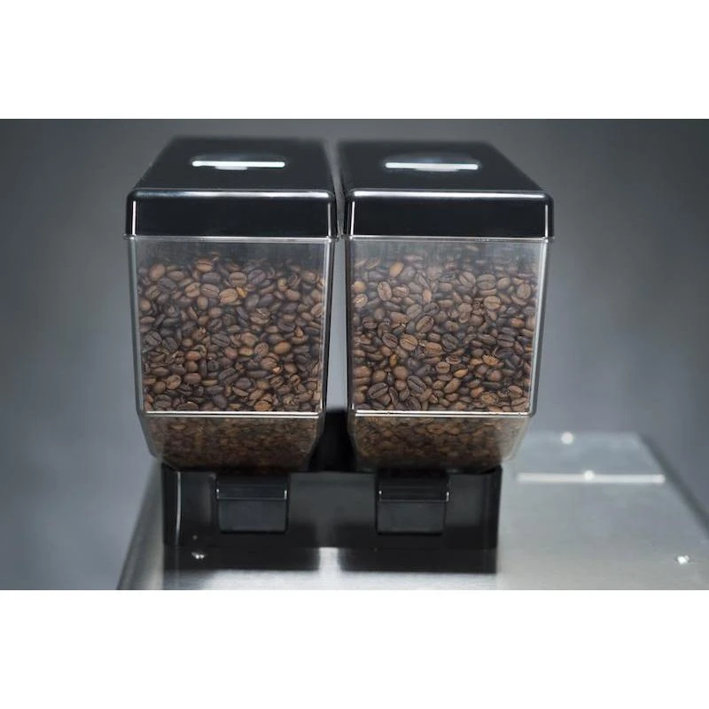 Whole beans are prominently displayed in clear hoppers, denoting the freshness of each brew. The hoppers are designed with the perfect angle to ensure a consistent flow of beans, and each hopper has its own dedicated grinder. High-quality burrs provide a uniform grind distribution and electronic dosing assures the constancy of the brew recipe. This is the foundation for complete and repeatable flavor extraction.