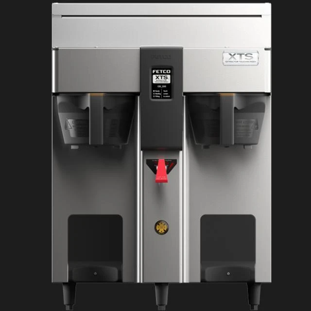 Ensure that your coffee station is always stocked with delicious, aromatic coffee by using this Fetco CBS-2132XTS E213251 XTS series stainless steel double automatic coffee brewer. Since this brewer is part of the modern XTS series, it features a sleek touchscreen interface. The screen lets your staff access all the controls from one location and includes instant visual feedback during programming, diagnostics, or brew cycles. It allows streamlined programming and gives you data metrics. Also, customizable features let you set up the start screen and recipe names to fit the needs of your particular business.