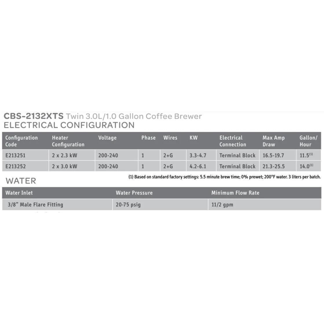 The Twin Station CBS-2132XTS Touchscreen Series Airpot Coffee Brewer is a perfect hot beverage solution for high volume self-service environments such as convenience stores, cafeterias, specialty coffee shops, or office coffee service (OCS). Now you can experience total control of this fully featured Extractor® Brewing System via an inviting touchscreen interface display that is intuitive, easy to read, and simple to navigate.