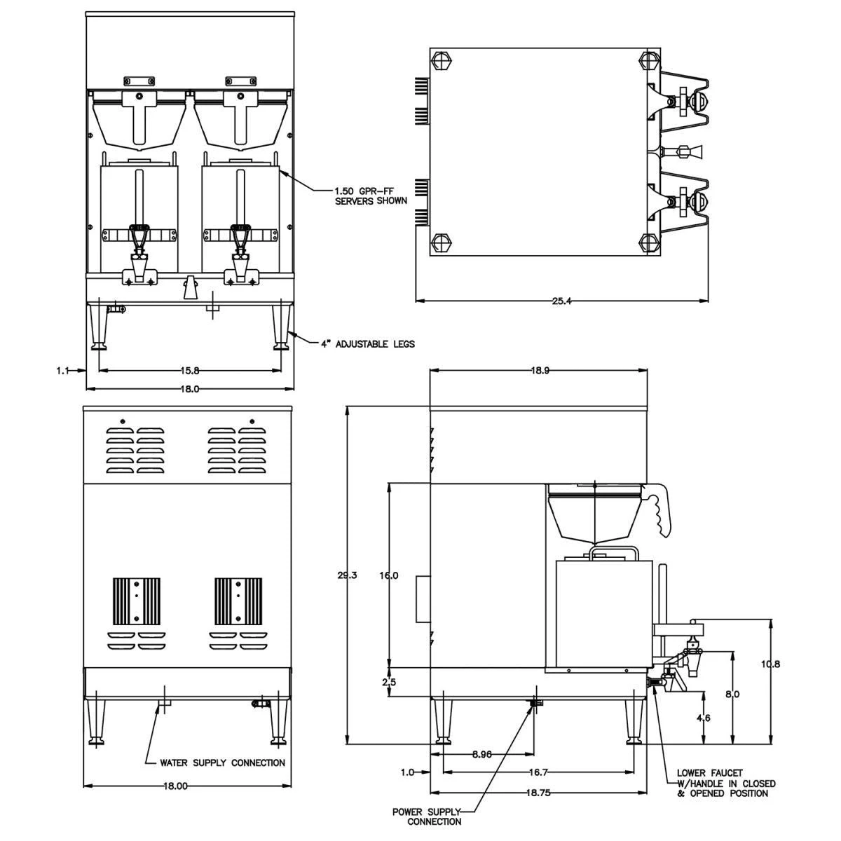 - Brews up to 18.9 gallons of coffee per hour