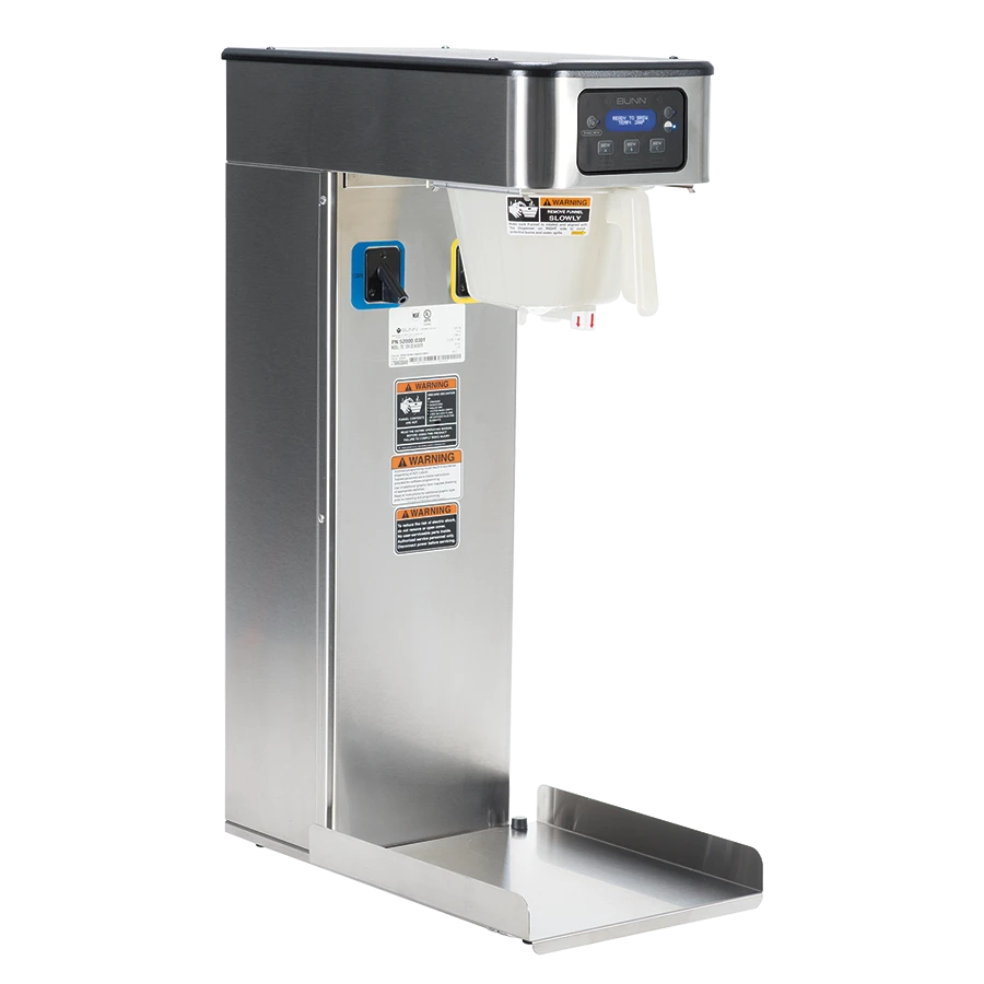 The Bunn Infusion Series ITB Dual Dilution Tea Brewer features a sleek modernized design, with rounded angles on the corners and trunk. The ITB dual dilution allows for two containers (sold separately) to be brewed from a single footprint.