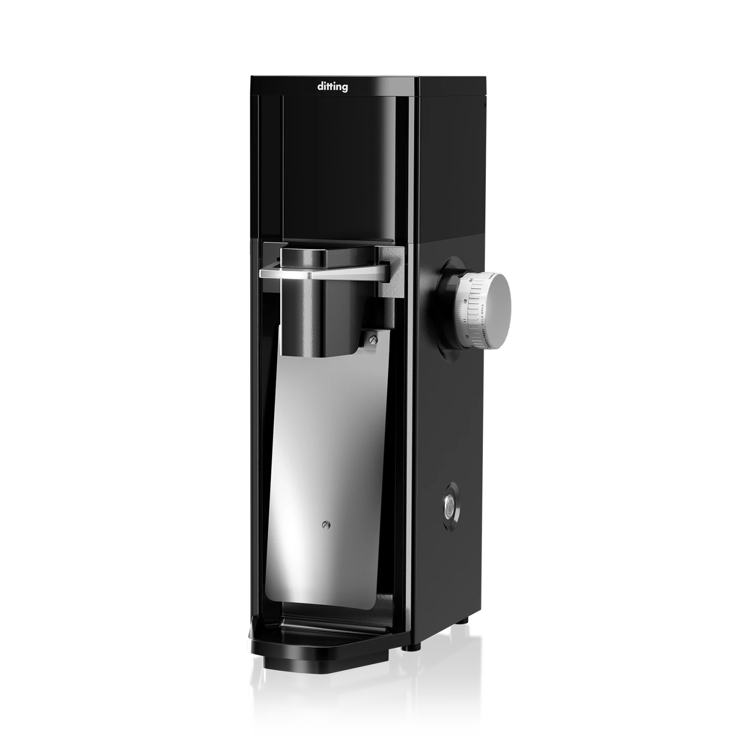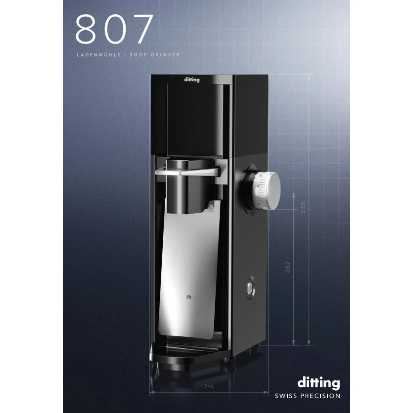 The Ditting 807 is a retail coffee grinder with 80mm flat, steel burrs that are capable of grinding up to 30 pounds of coffee per day. External upgrades to this grinder include a more modern design, a stepless grind adjustment with easy-to-read indicators, and a new electronic switch. Like the 804 before it, it includes a vibrating shaker plate that helps to settle grounds when grinding directly into bags and a spring-loaded clamp holds bags firmly in place for hands-free grinding. This grinder is optimized for bag grinding, and it offers a full range of particle sizes from Turkish to cold brew. Dual fans have also been added to the 807 line to maintain consistent temperatures and particle uniformity at any grind size.