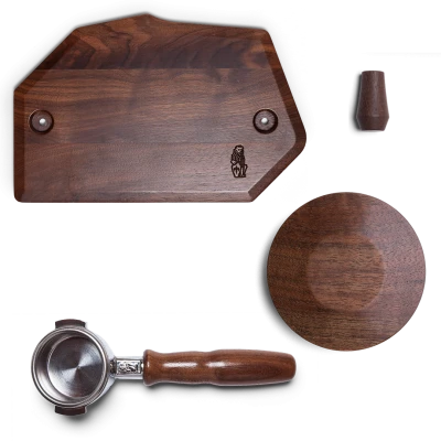 - Walnut: Set of Walnut Side Panels, AV Group Cap, Double-Spouted Portafilter, and Steam Lever