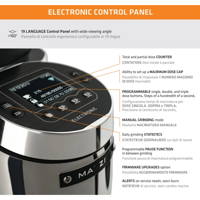 - On-demand grinding with electronic dose adjustment