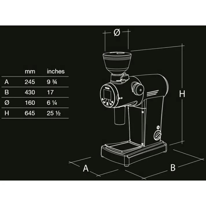 The ZM Filter grinder boasts a digital grind adjustment system allowing the barista to control the distance between the burrs in microns so that the grind setting is understandable, accurate, and repeatable. On the digital display, 20 preset grind settings can be recorded, with 4 pre-programmable buttons for quick recipe recall. The ZM’s advanced cooling system, a double fan ensuring that coffee grounds stay cooler, preserves flavor and taste compounds. The ZM has coffee retention of under .45 grams to allow for single dosing. These features create a grinder that fits perfectly in the workflow of a specialty cafe.