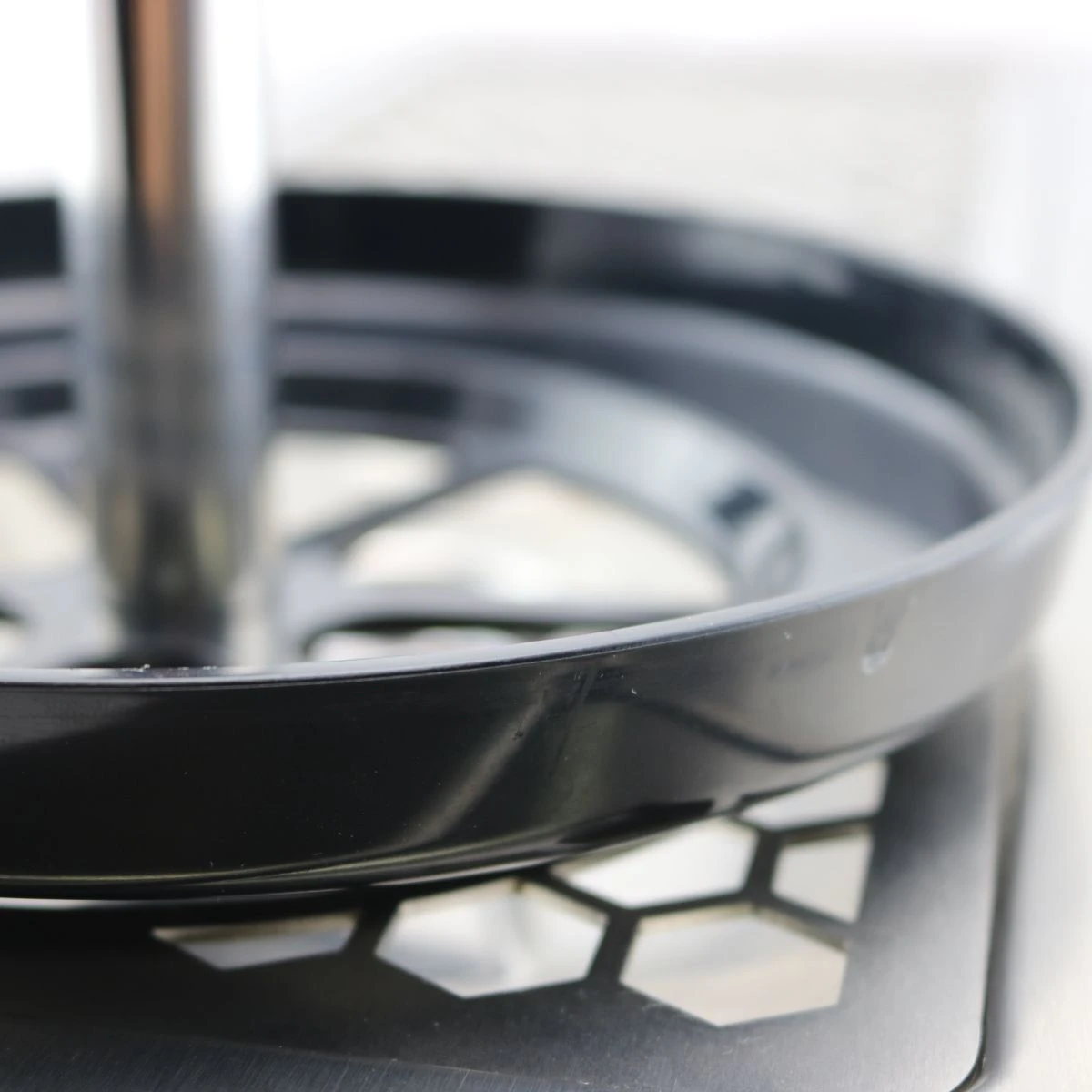 The RHPR600-S-BL also features the standard Rhino Spinjet Valve, which spins and sprays in fast, sweeping action, easily removing stubborn waste from your vessel. Its low-profile body is optimally sloped and angled to ensure the effective removal of liquids, reducing common odors caused by static waste. The additional large actuator plate supports blender jugs and larger vessels such as plungers and milkshake cups.