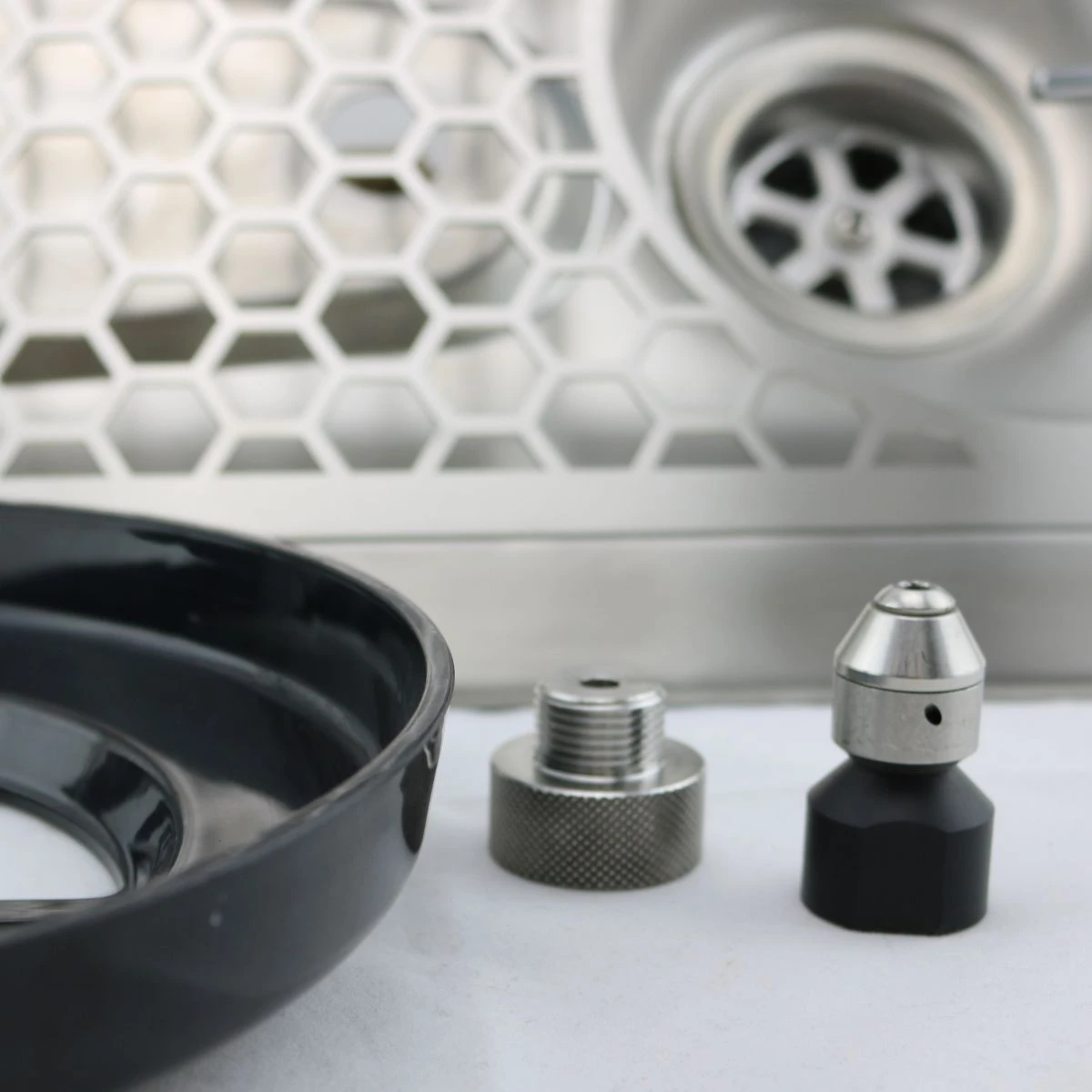 The RHPR600-S-BL is one of Rhino Coffee Gear’s latest releases. This rinser kit features the standard Rhino 600mm Spinjet Pitcher Rinser with an additional Blender attachment for larger vessels and popular blender jugs such as Vitamix and Blendtec.