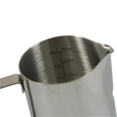 Measurements are etched right into the interior of both sides of the pitcher. The scale is etched in both ounces and milliliters to reduce the guesswork when pouring milk. Reducing waste means dollars saved for your cafe.