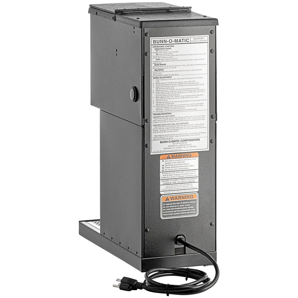 GRINDER CALIBRATION: There may be signs of use from the Bunn factory calibration process, which involves the use of coffee beans. Per Bunn, each grinder is factory tested and calibrated with actual coffee beans before being sold. Additionally, per Bunn, it is normal to have some coffee residue, dust, or particles leftover from the calibration process in a “factory new” grinding machine.