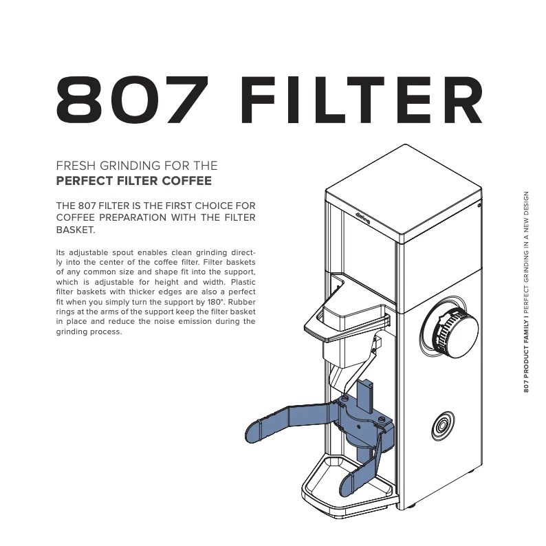 While designed with batch brewer grinding, the 807 Filter with Lab Sweet burrs is a very capable single dose grinder as well thanks to the spouted chute, giving any cafe maximum flexibility.
