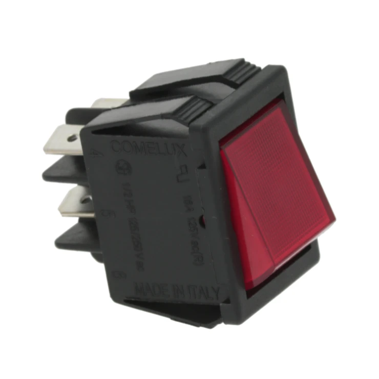 - 16(4)A 250V, max. temperature 120°C, with red lamp, mounting hole 22x30mm