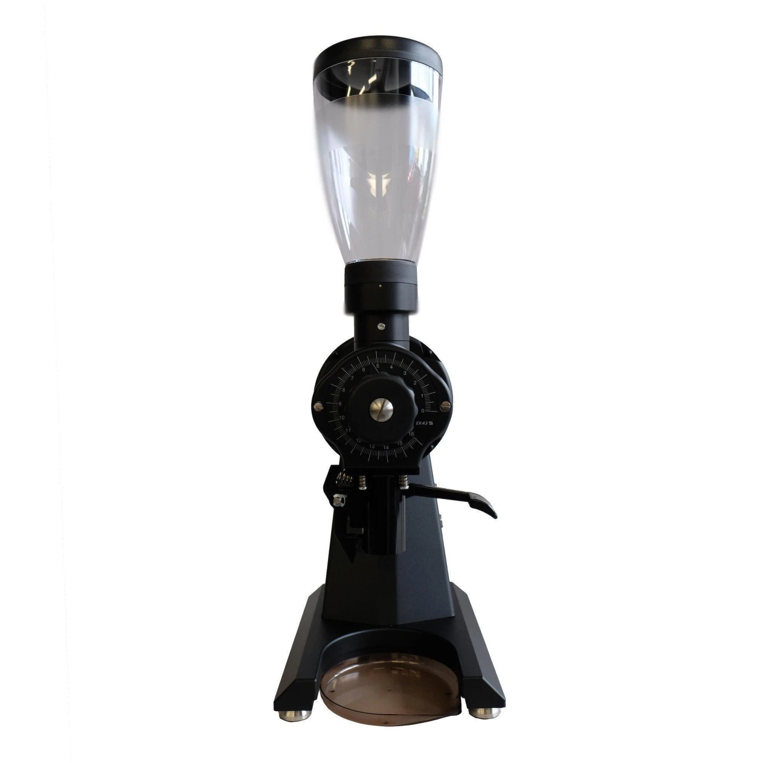 A lower base height and smaller bean hopper combine to give 4 extra inches of under-cabinet clearance, while the lowered spout makes the EK43S better suited for single dosing espresso or pour-over grinding.