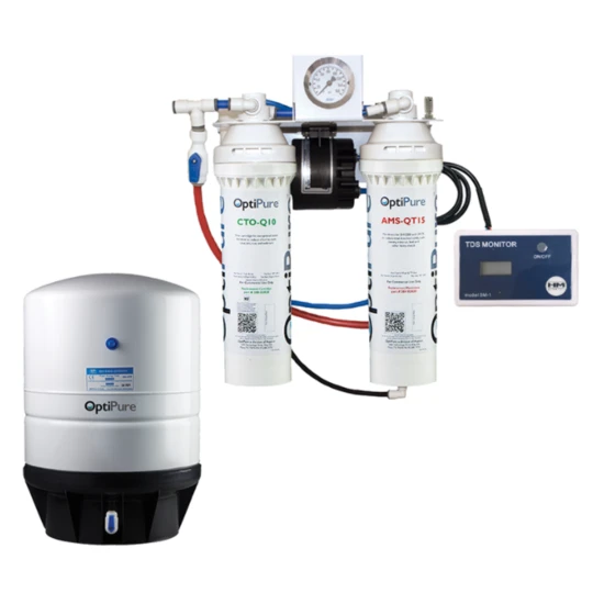 The OptiPure® BWS175 utilizes Reverse Osmosis (RO to remove >97% of the Total Dissolved Solids (TDS) from water. Then, a balance of minerals is dissolved into the RO water, followed by a precision blend valve for further TDS adjustment, to provide optimized water with desirable TDS for recommended applications.