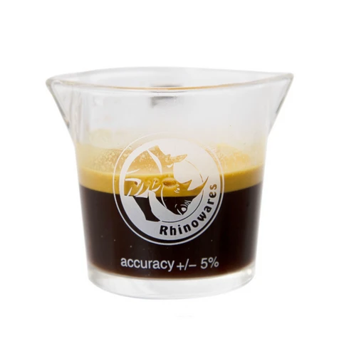 Simple, sturdy, and featuring two spouts, Rhino’s double-spouted shot glasses are designed to be a staple on your drip tray. Its large capacity and wide mouth make it ideal for any recipe or portafilter, while the thick glass ensures it’ll survive more than a few falls.